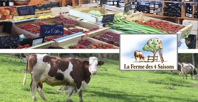Ferme des quatre saisons - Cueillette fruits de la ferme - Cueillette légumes - Eau de vie de poire william’s - Eau de vie de reine-claude - Fruits de la ferme - Légumes de la ferme - Poulet fermier - Produit de la ferme - Reblochon fermier - Vin de la région |